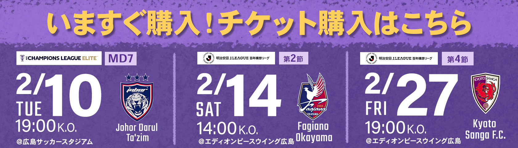 明治安田J1百年構想リーグ WEST第2節・第4節チケット販売スケジュールのお知らせ